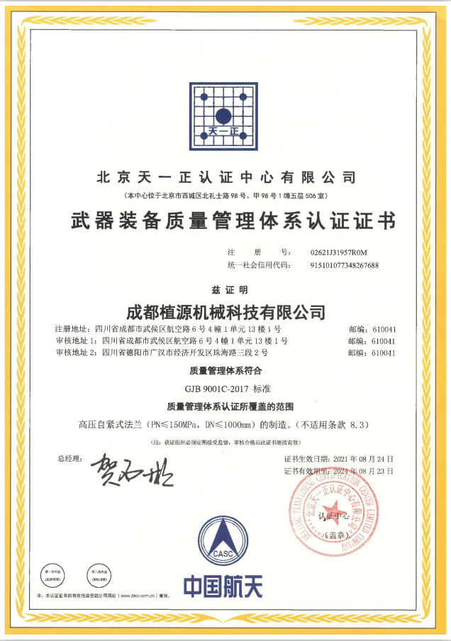 近日,四川省經(jīng)濟和信息化廳通知印發(fā)2023年度《四川省重大技術(shù)裝備首臺套軟件首版次推廣應用指導目錄(2023年版)》,成都植源機械科技有限公司(以下簡(jiǎn)稱(chēng)“成都植源”)自主研發(fā)的“超大口徑ZY-LOC法蘭(DN1100)”產(chǎn)品(目錄第14.2.28條)成功入選。